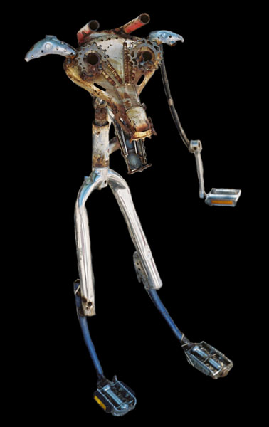 We have a custom metal works shop where we make sculptures, bike racks, gates,and just about any other damn thing you can imagine out of old bike parts.